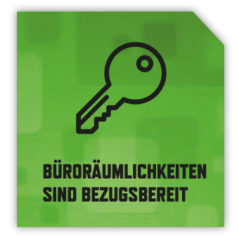 Die Büroräumlichkeiten sind bezugsbereit. Durch bereits ausgebaute Büroflächen durch den Vormieter sind «Plug & Work»-Konzepte möglich.