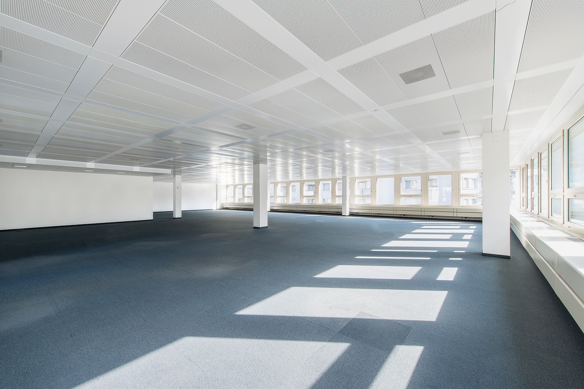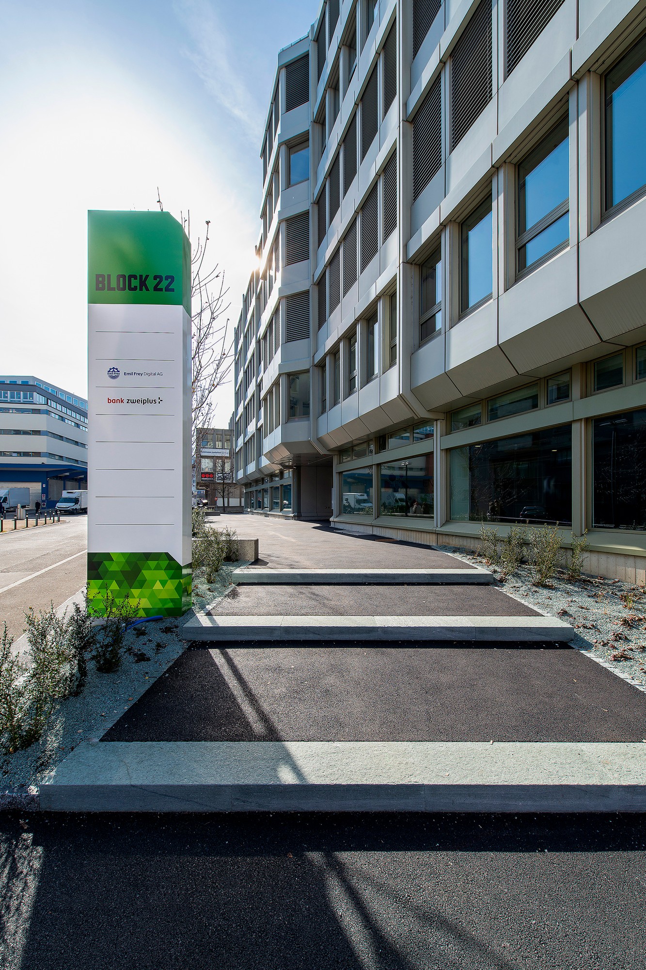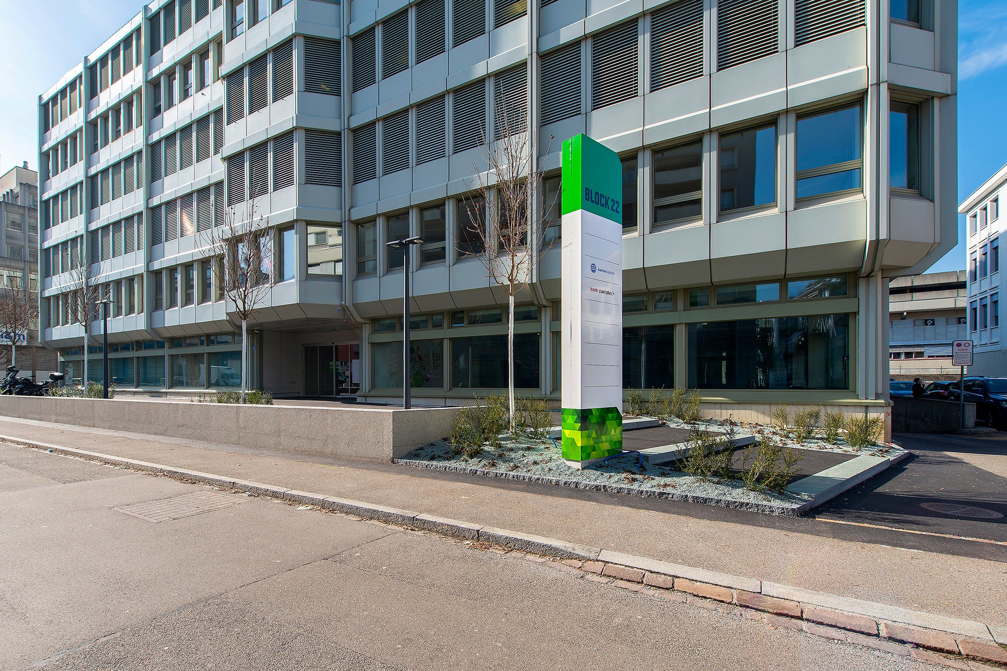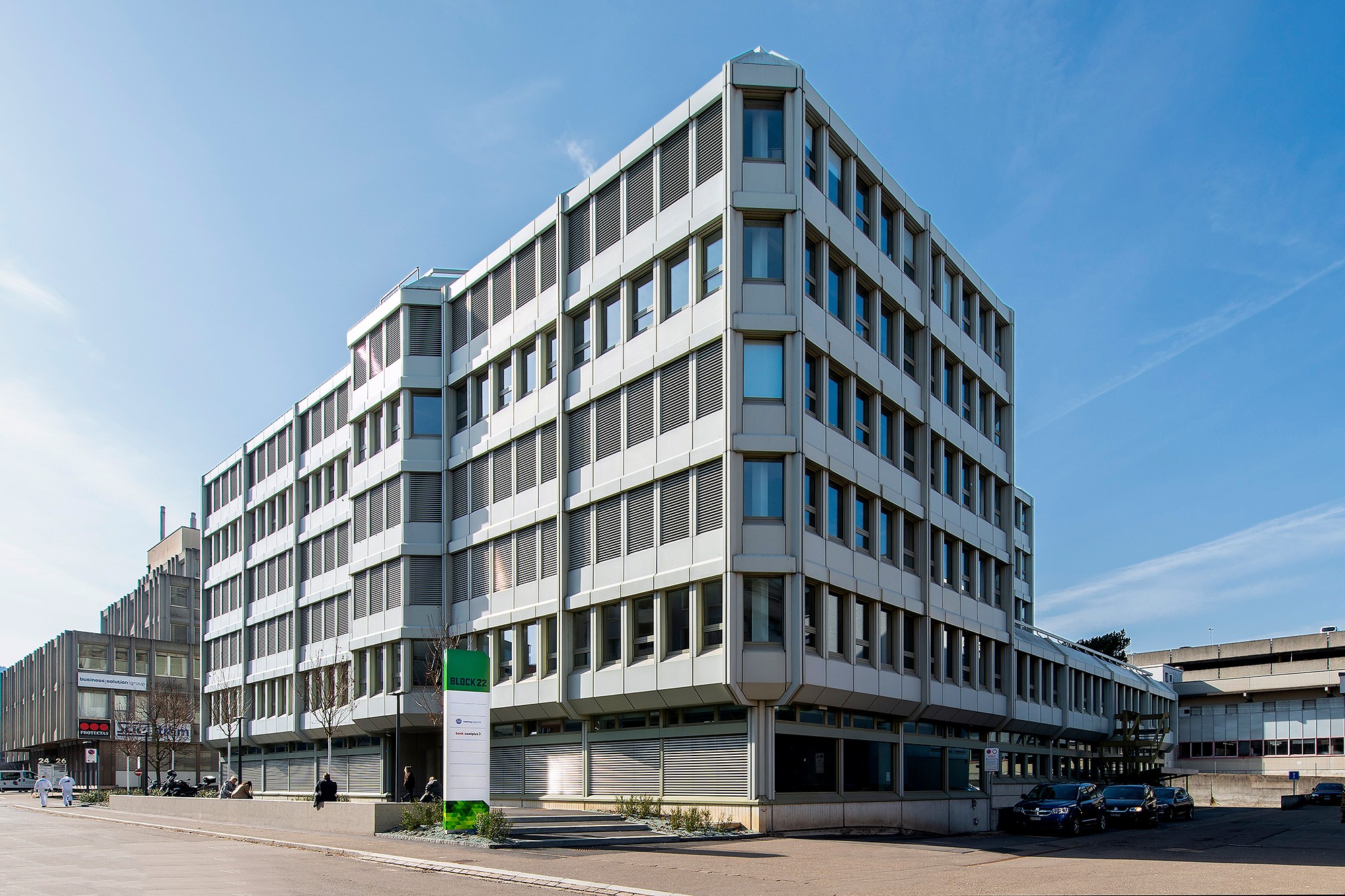 Wandelbar, anpassbar und massgeschneidert – die Büroräumlichkeiten der Liegenschaft BLOCK22 sind den heutigen Anforderungen an die modernen Arbeitswelten angepasst. Die noch verfügbaren 4'300 m2 Büroflächen verteilen sich hier über drei Stockwerke – vom EG bis ins 2. OG. In den hellen, offenen Räumen mit Flächen von ca. 600 bis 1'800 m2 pro Etage sind dank der flexiblen Gebäudestruktur des BLOCK22 sämtliche individuelle Arbeitsplatzkonzepte sowohl auf ganzen Geschossen als auch auf halben Geschossen umsetzbar. Dabei können je nach Anforderung offene Bürozonen für Open Space Büros ebenso leicht realisiert werden wie geschlossene Einzelbüros für konzentriertes Arbeiten. Meetingzonen und Treffpunkte gehören bereits zum bestehenden Layout. Die Büroflächen werden «as is» mit folgendem Ausbau vom Vormieter angeboten: Teilweise abgehängte Decken mit integrierter Lüfung (vorkonditionierte Frischluft), Doppelboden inkl. partieller Elektro- und IT-Verkabelung. Für die Installationen des Vormieters übernimmt der Vermieter keine Garantie/Gewährleistung. Darüber hinaus werden die bereits ausgebauten Sanitärzellen aufgefrischt sowie eine neue aussenliegende Storenanlage installiert. Die Liegenschaft bietet eine grosszügige Terrasse im 2. OG sowie Inhouse-Parkplätze in den zwei Untergeschossen und eine Anlieferungzone mit Warenlift.